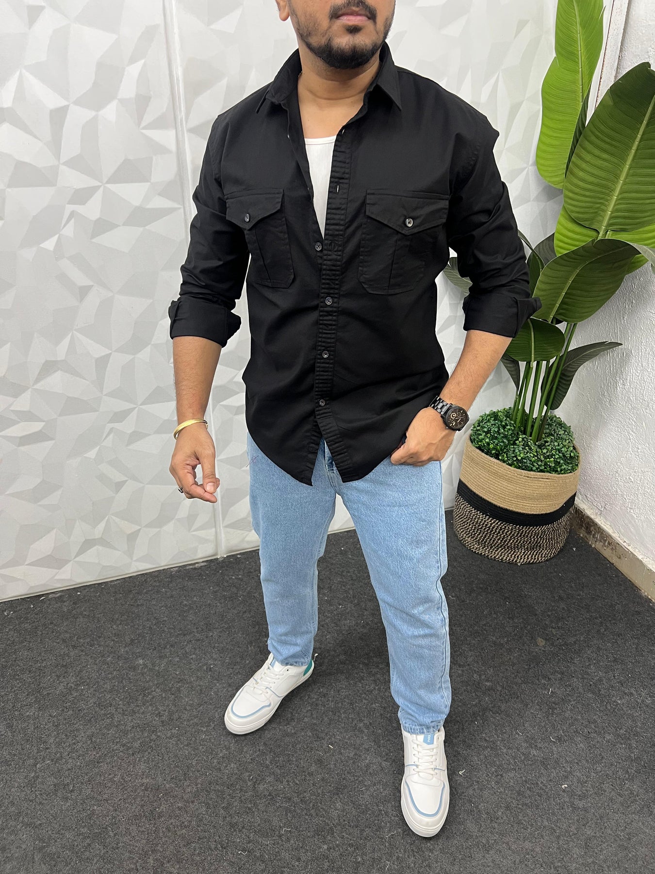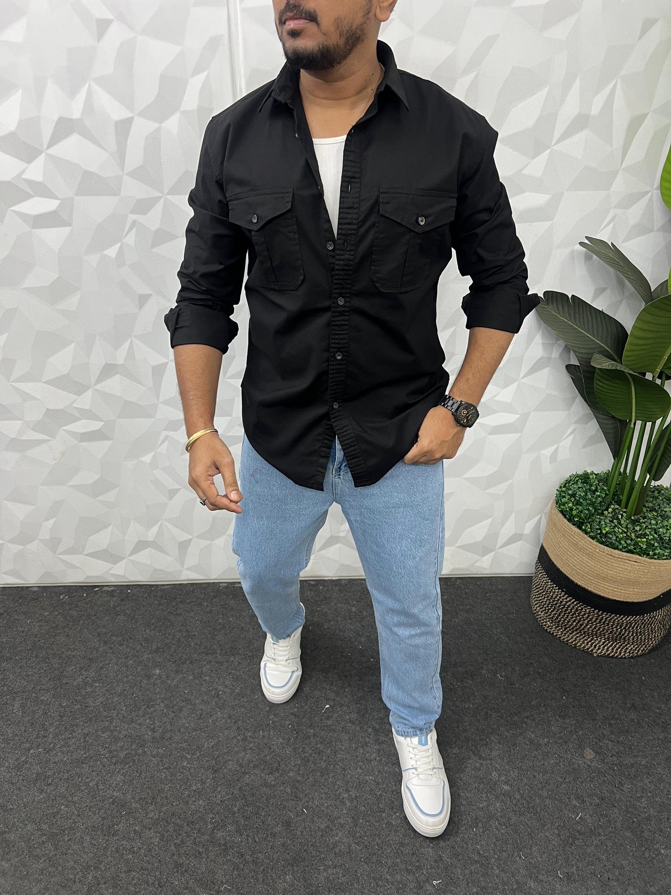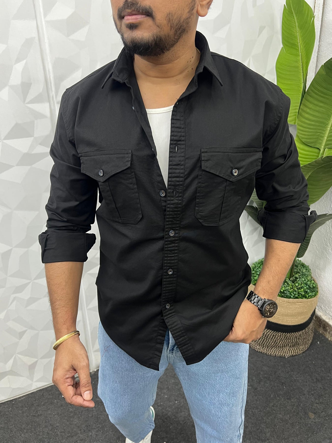 Oxford lycra cargo shirt (Black)